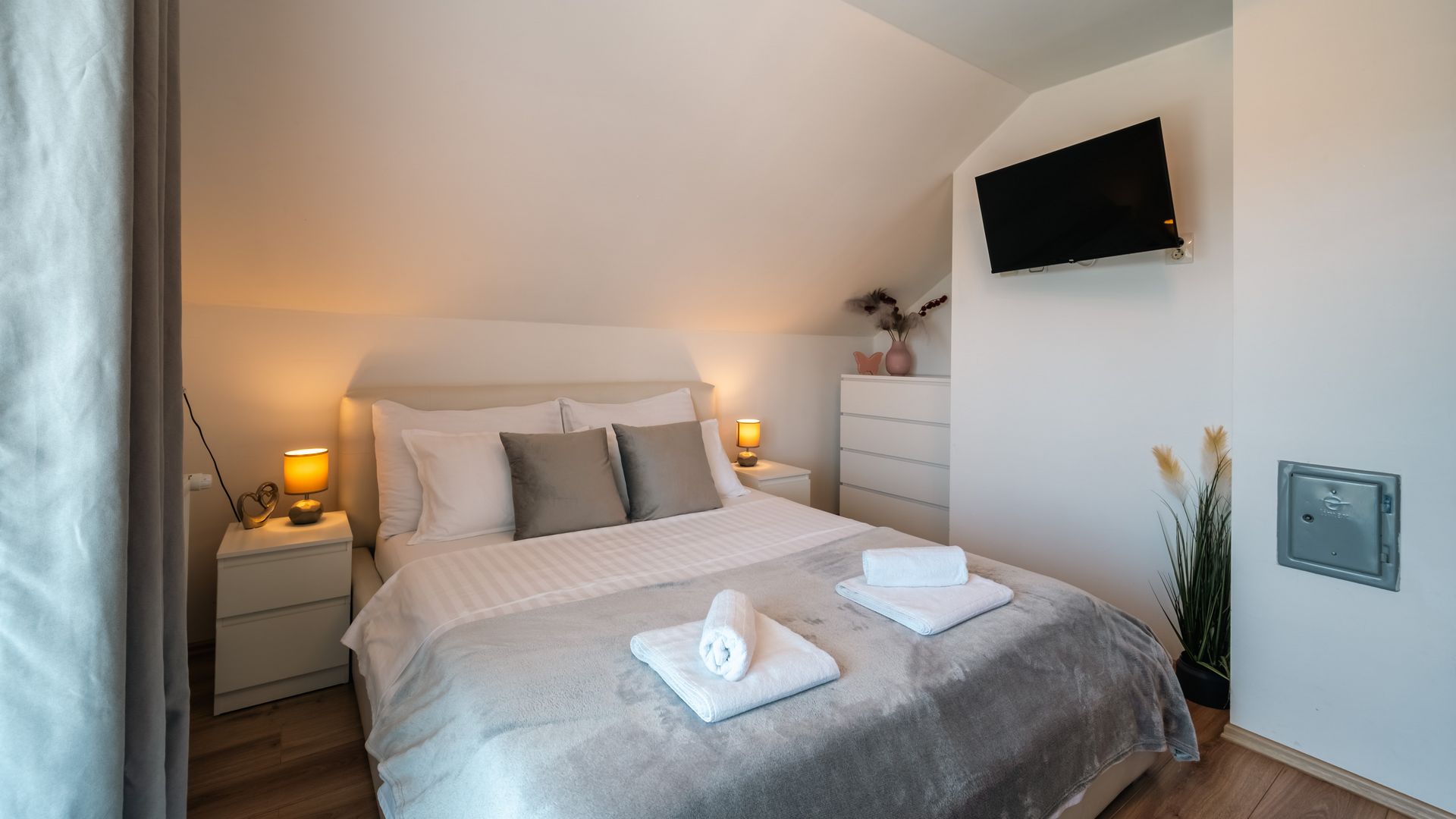 In einer solchen Umgebung liegt nämlich das moderne Ferienhaus Aurelija, eine komfortable Oase, wie geschaffen zum Entspannen. Ein beheizter Pool im Außenbereich, ein Whirlpool und eine Sauna laden zum Genießen ein und eine überdachte Terrasse mit Grill und Kücheninsel sind die perfekte Kulisse für gesellige Treffen mit Familie und Freunden.