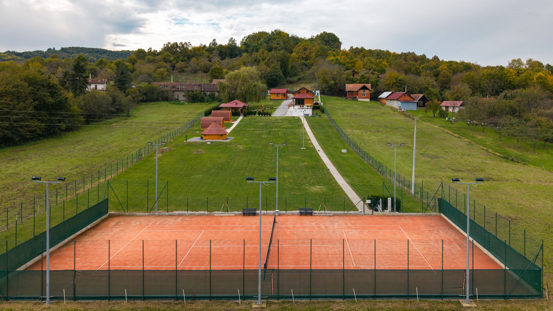Tennis courts designed for a serious match or first steps at tennis, glamping houses that combine luxury with a touch of nature, a children's playground, and a spacious lawn for carefree playing... they are the reason to come to this house that invites you to create the best memories.