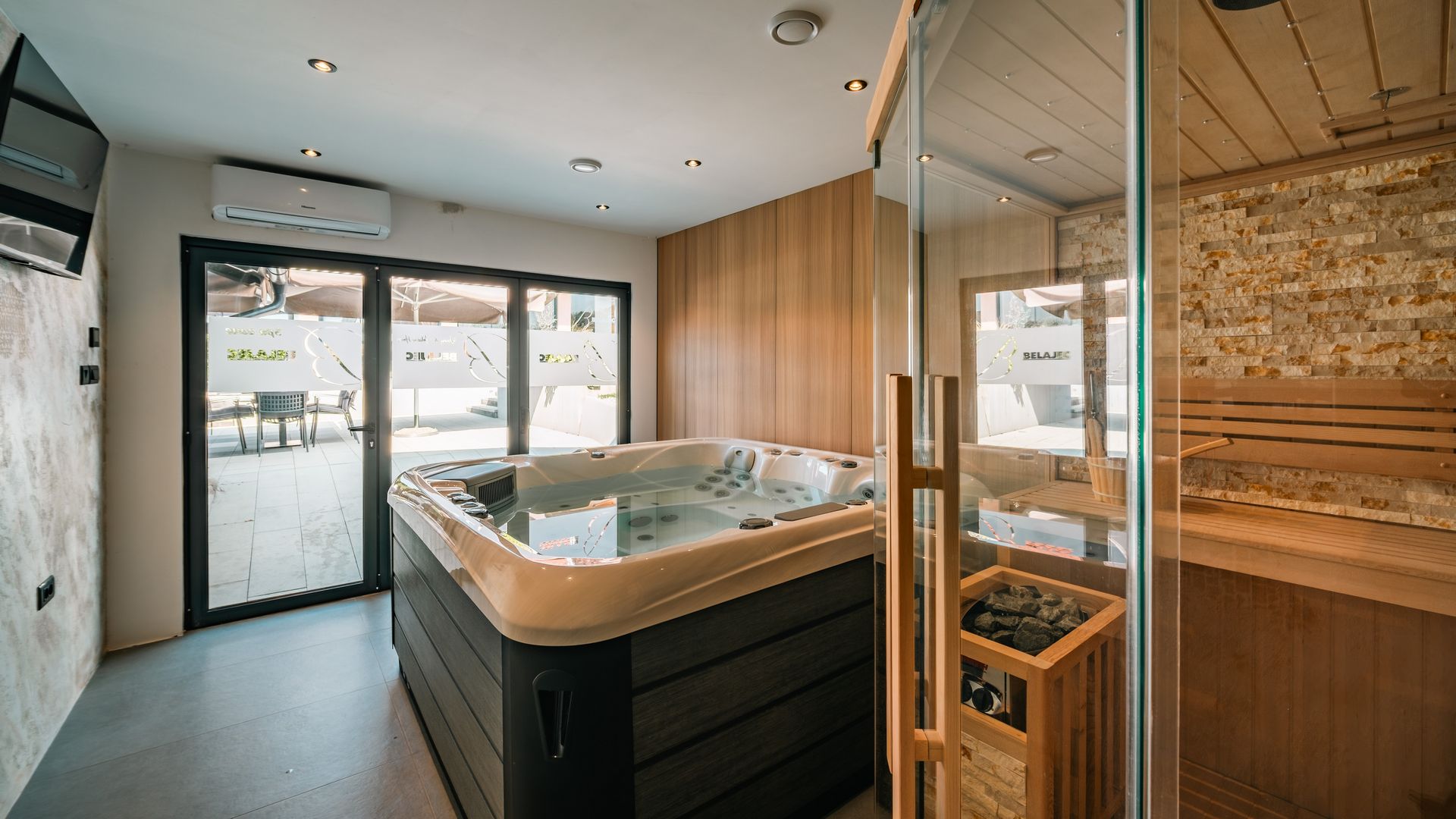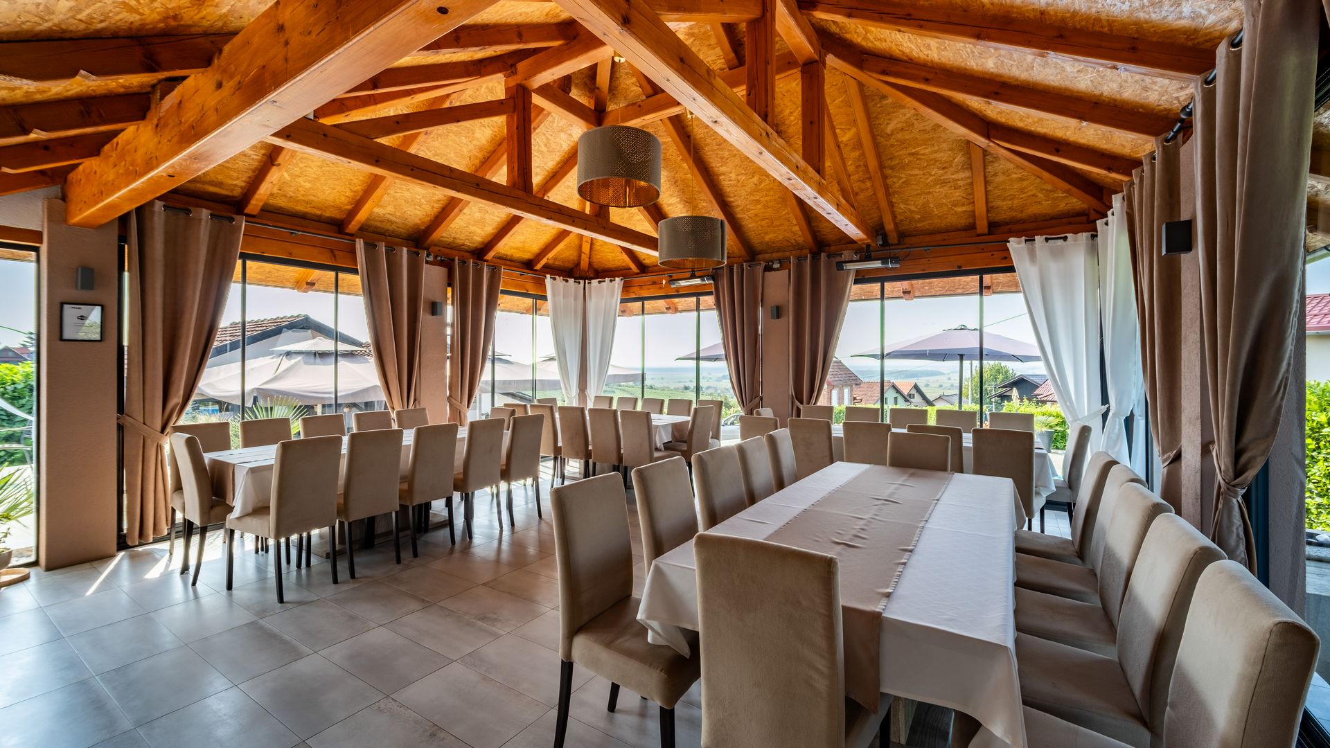 Besides walking through the inspirational landscape and silence, you can also relax there in the outdoor pool, jacuzzi, and sauna, along with a glass of aromatic wine that will round off the hedonistic experience.