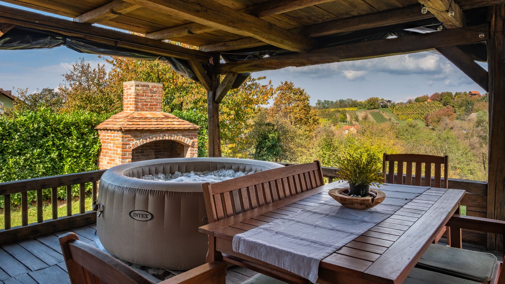 Staying there will be a true experience any time of the year - in spring, when the Japanese cherries are in bloom, and colorful flowers are scattered all over the meadow, in the summer - when the outdoor pool offers true refreshment from the summer heat, in the autumn - when the surrounding nature turns into majestic colors, or in the winter - when the house is heated by an open fireplace, where it is a true joy to play a board game with your favorite people, or to read a book to the sound of a crackling fire.