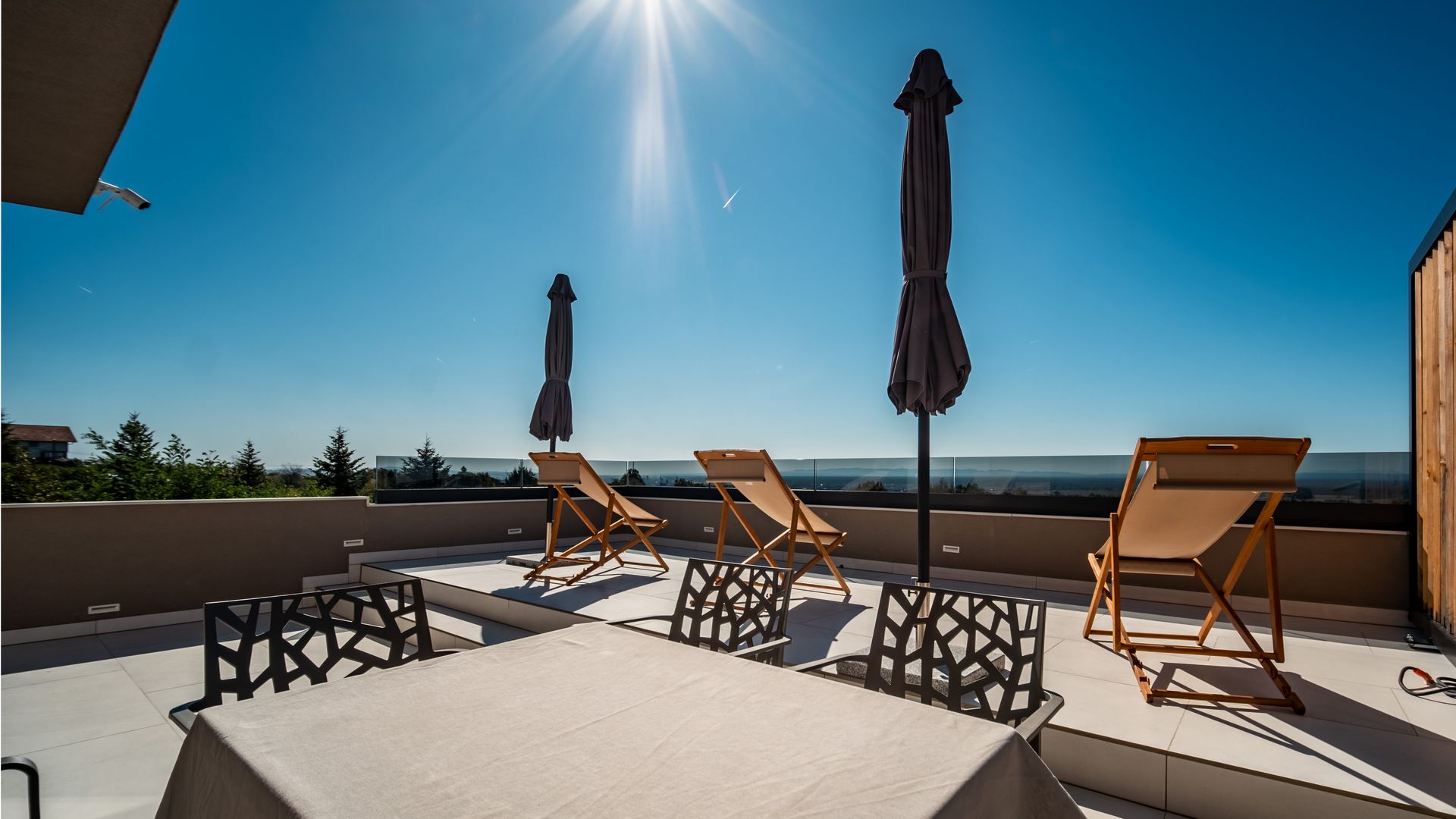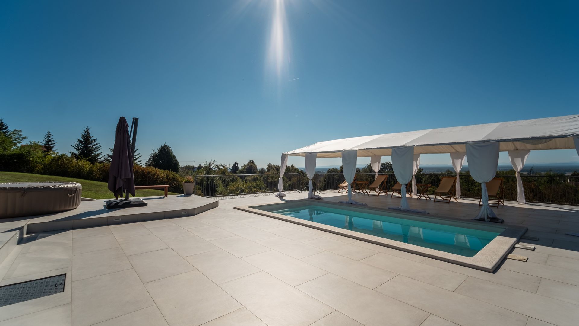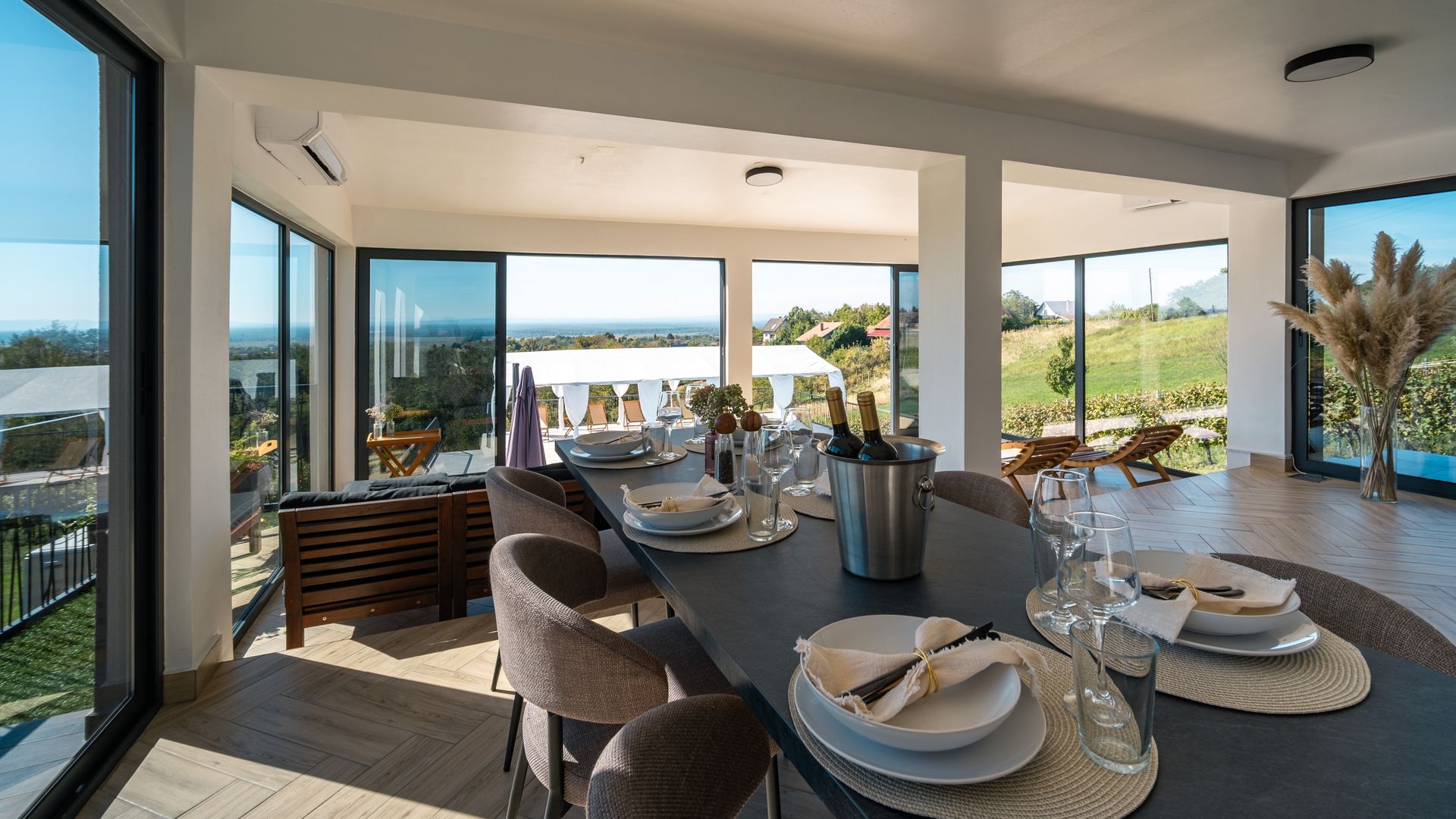 Osim pozicije na zelenom brežuljku, odlične opremljenosti i vrhunske udobnosti, adut kuće je i vanjski bazen okružen vinogradima.