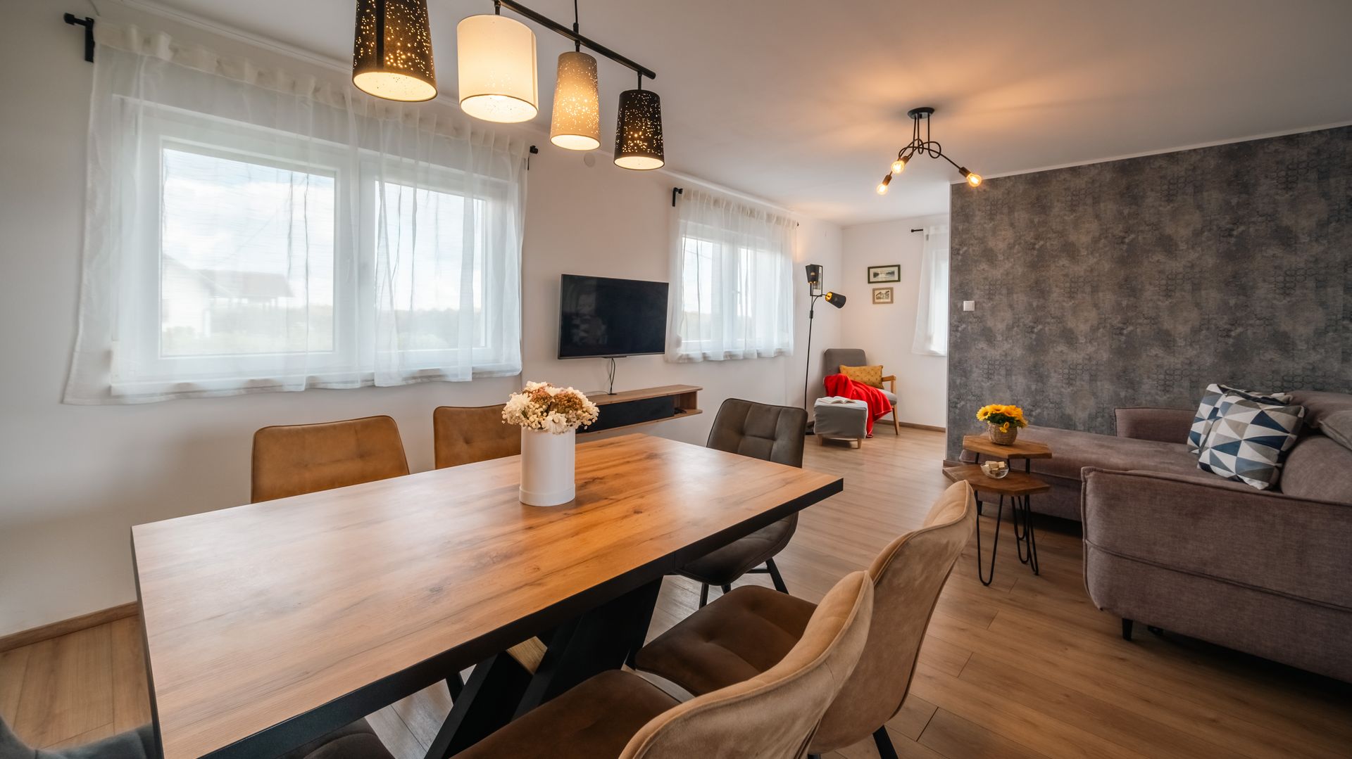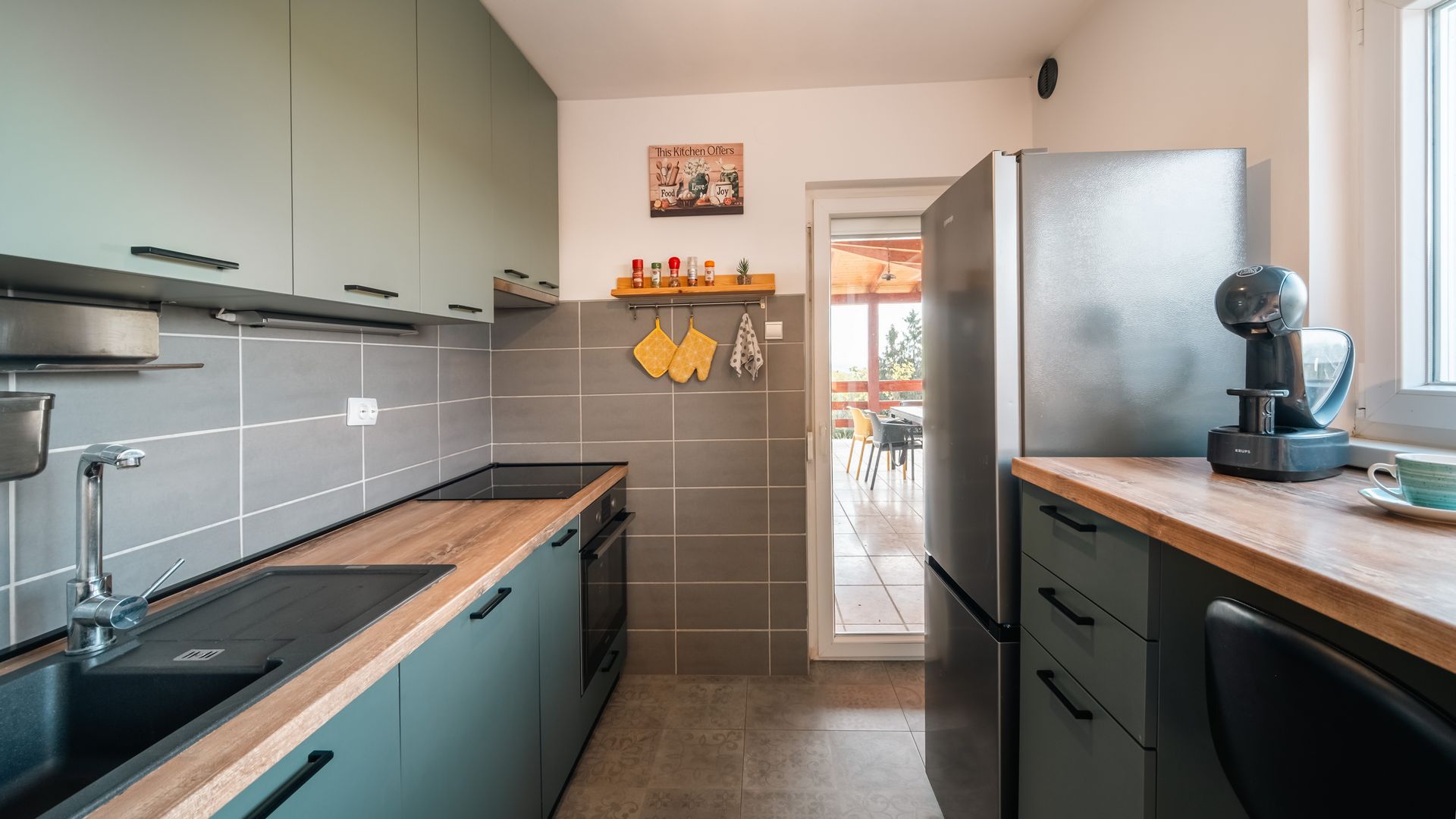 Dječje igralište, veliko dvorište, prostrana terasa za ispijanje jutarnje kave ili večernje druženje, roštilj i vanjski bazen uveselit će i male i velike goste.